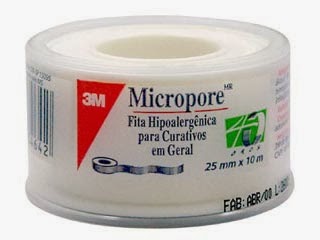 19 - Hora de colocar. Primeiro, separe alguns pedaços de micropore, o suficiente para segurar bem o scalp para não ter perigo de sair. Depois, pegue um algodão com álcool e esterilize a pele onde vai ser aplicada a medicação